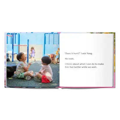 Pensa in fretta con Wei, che escogita diversi modi per confortare il suo amico dopo una caduta al parco giochi.