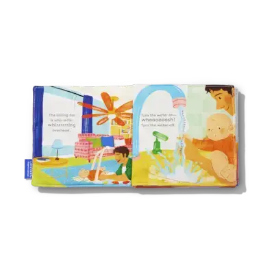 Porta il tuo bambino curioso a fare un giro della casa con questo libro di stoffa colorato. Tanti panorami e suoni interessanti!